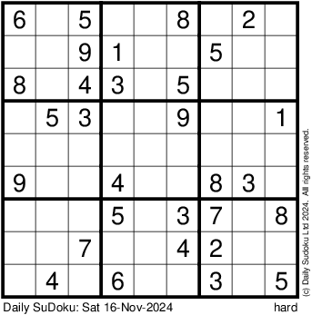 The Daily SuDoku: Sat 16-Nov-2024