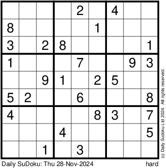 The Daily SuDoku: Thu 28-Nov-2024