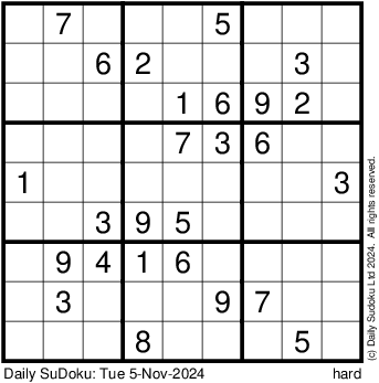 The Daily SuDoku: Tue 5-Nov-2024