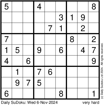 The Daily SuDoku: Wed 6-Nov-2024
