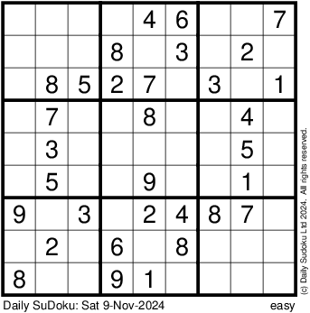 The Daily SuDoku: Sat 9-Nov-2024