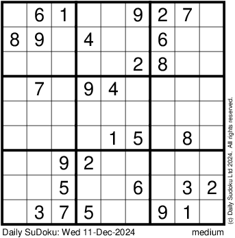 The Daily SuDoku: Wed 11-Dec-2024