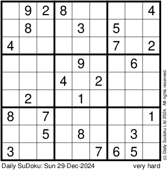 The Daily SuDoku: Sun 29-Dec-2024