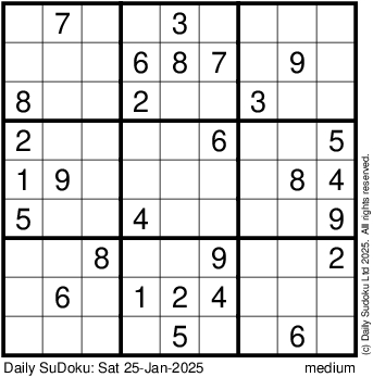 The Daily SuDoku: Sat 25-Jan-2025