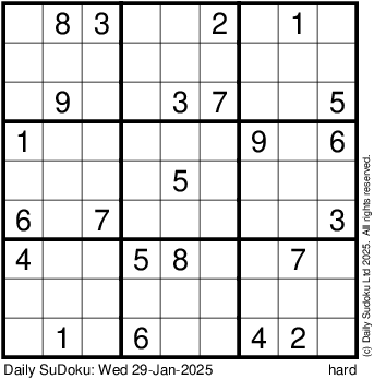 The Daily SuDoku: Wed 29-Jan-2025