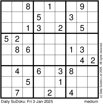 The Daily SuDoku: Fri 3-Jan-2025