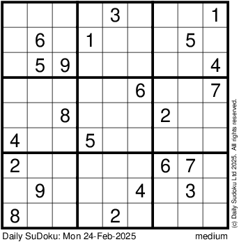 The Daily SuDoku: Mon 24-Feb-2025