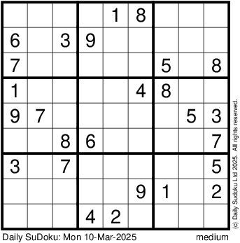 The Daily SuDoku: Mon 10-Mar-2025