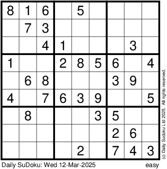 The Daily SuDoku: Wed 12-Mar-2025