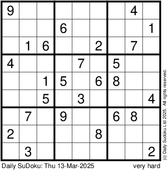 The Daily SuDoku: Thu 13-Mar-2025