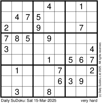 The Daily SuDoku: Sat 15-Mar-2025