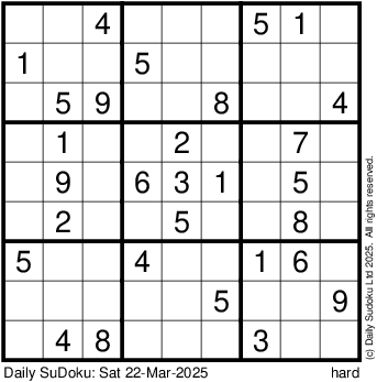 The Daily SuDoku: Sat 22-Mar-2025