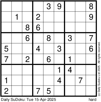 The Daily SuDoku: Tue 15-Apr-2025