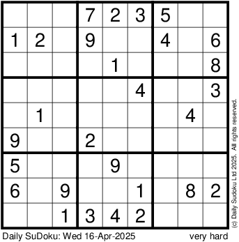 The Daily SuDoku: Wed 16-Apr-2025