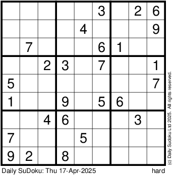 The Daily SuDoku: Thu 17-Apr-2025