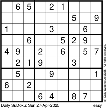 The Daily SuDoku: Sun 27-Apr-2025
