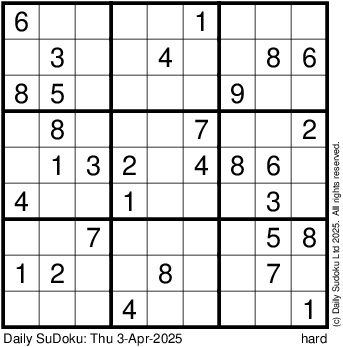 The Daily SuDoku: Thu 3-Apr-2025