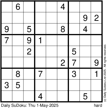 The Daily SuDoku: Thu 1-May-2025