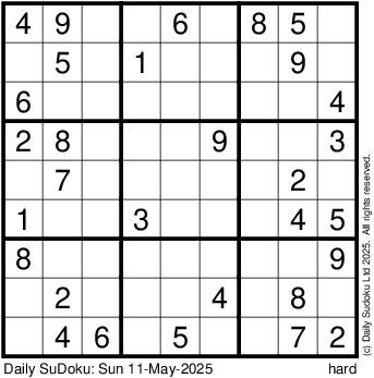 The Daily SuDoku: Sun 11-May-2025