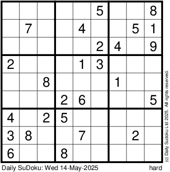 The Daily SuDoku: Wed 14-May-2025