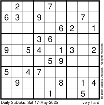 The Daily SuDoku: Sat 17-May-2025