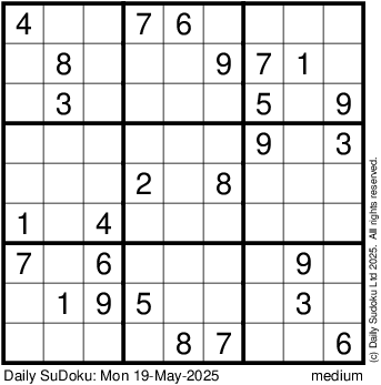 The Daily SuDoku: Mon 19-May-2025