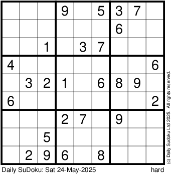 The Daily SuDoku: Sat 24-May-2025