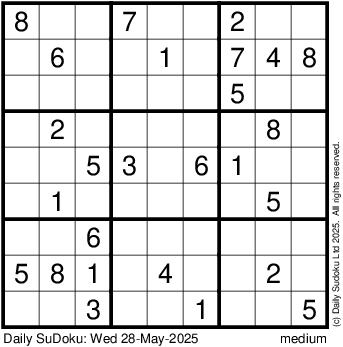 The Daily SuDoku: Wed 28-May-2025