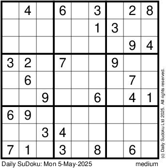 The Daily SuDoku: Mon 5-May-2025