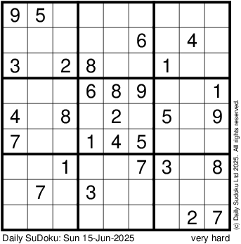 The Daily SuDoku: Sun 15-Jun-2025