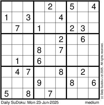 The Daily SuDoku: Mon 23-Jun-2025
