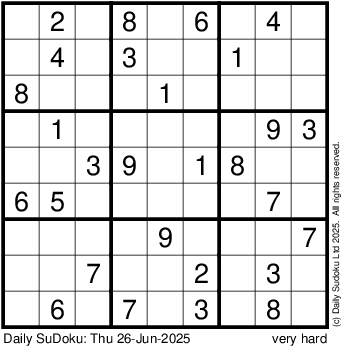 The Daily SuDoku: Thu 26-Jun-2025
