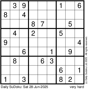 The Daily SuDoku: Sat 28-Jun-2025