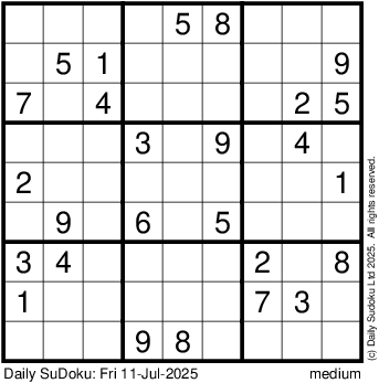 The Daily SuDoku: Fri 11-Jul-2025