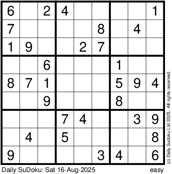 The Daily SuDoku: Sat 16-Aug-2025