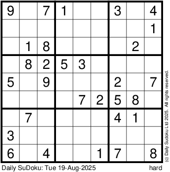 The Daily SuDoku: Tue 19-Aug-2025