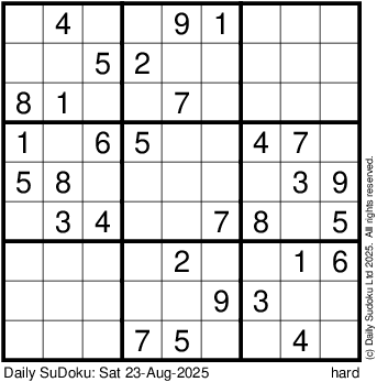 The Daily SuDoku: Sat 23-Aug-2025