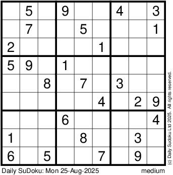 The Daily SuDoku: Mon 25-Aug-2025