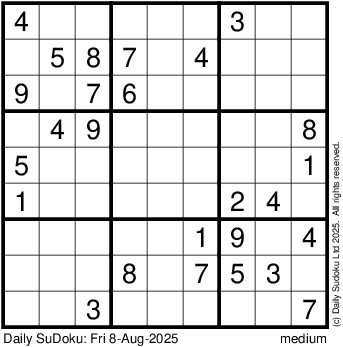The Daily SuDoku: Fri 8-Aug-2025