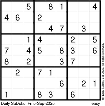 The Daily SuDoku: Fri 5-Sep-2025