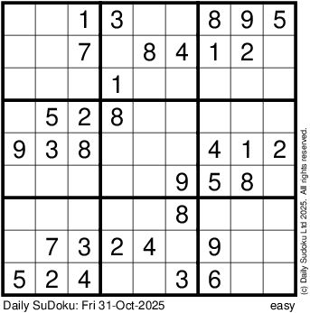 The Daily SuDoku: Fri 31-Oct-2025