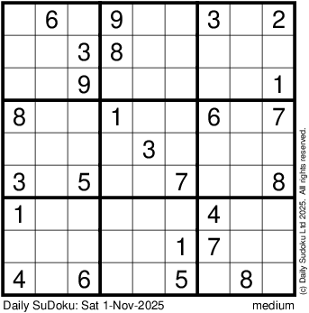 The Daily SuDoku: Sat 1-Nov-2025