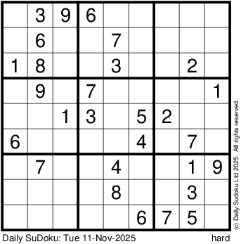 The Daily SuDoku: Tue 11-Nov-2025