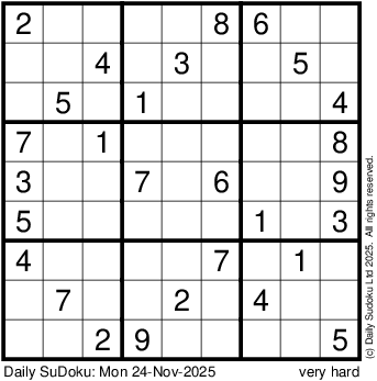 The Daily SuDoku: Mon 24-Nov-2025