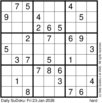 The Daily SuDoku: Fri 23-Jan-2026