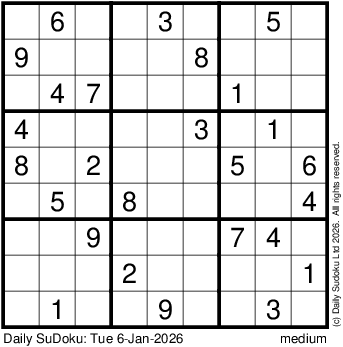 The Daily SuDoku: Tue 6-Jan-2026