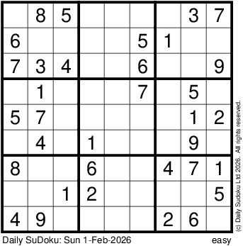 The Daily SuDoku: Sun 1-Feb-2026