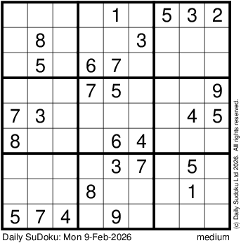 The Daily SuDoku: Mon 9-Feb-2026