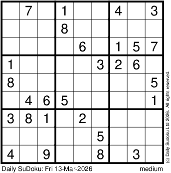 The Daily SuDoku: Fri 13-Mar-2026