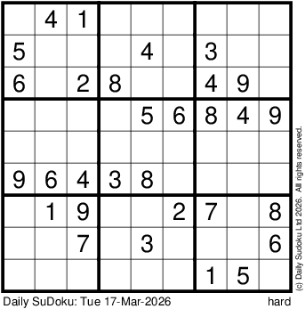 The Daily SuDoku: Tue 17-Mar-2026